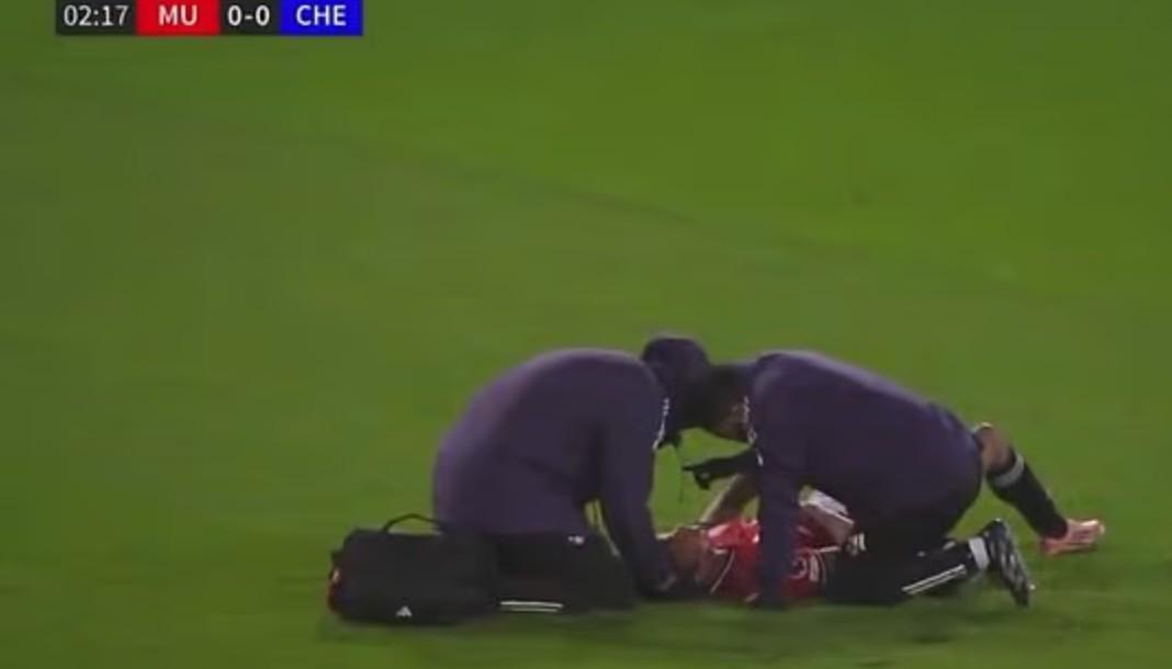 曼联球员奇多-奥比经过长时间检查后最终被替换下场。